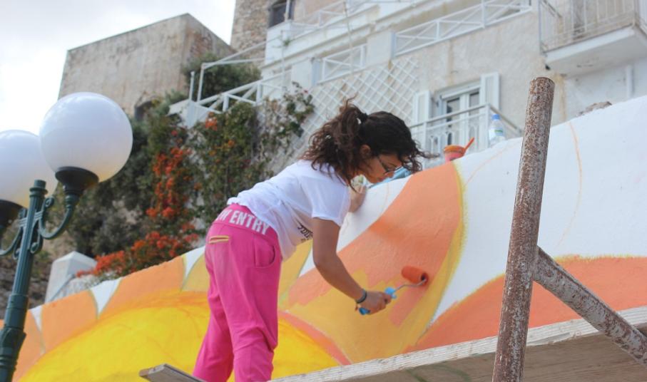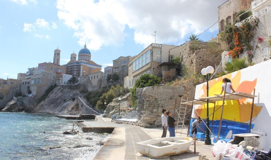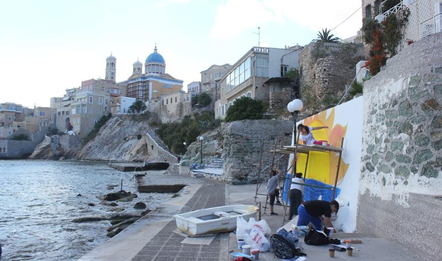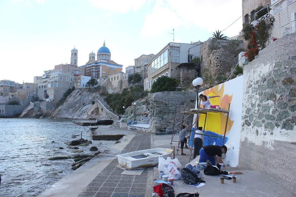 Χρώματα της θάλασσας και του ήλιου φωτίζουν ήδη τα “Αστέρια” στη συνοικία Βαπόρια της Ερμούπολης καθώς οι μαθητές του 1ου και του 3ου Γυμνασίου Σύρου βάζουν την προσωπική εικαστική “πινελιά” τους, δημιουργώντας ευχάριστες εικόνες προς αισθητική απόλαυση των επισκεπτών και των λουομένων.