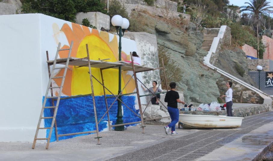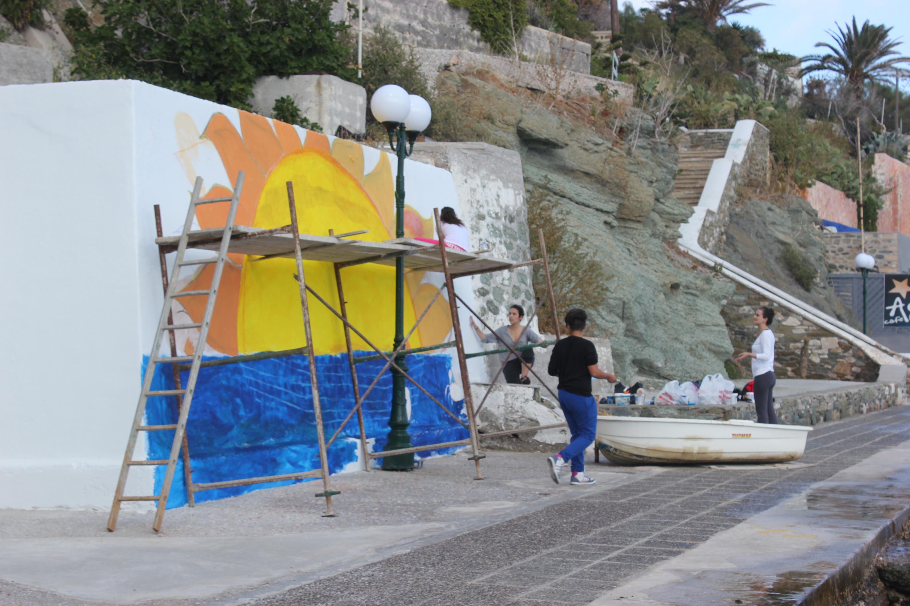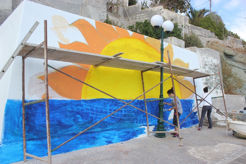 Λίγο πριν την έναρξη της εξεταστικής περιόδου, οι μαθητές της Β΄ και Γ΄ τάξης των δύο Γυμνασίων υπό την πολύτιμη καθοδήγηση της καθηγήτριάς τους στο μάθημα των Εικαστικών, Αργυρούς Διαμαντάκη θέλησαν να “ντύσουν” έναν ολόλευκο τοίχο με έναν ήλιο – ηλιοτρόπιο, δίνοντας χρώμα στο παραλιακό μέτωπο των Αστεριών, όπου καθημερινά μεταβαίνουν λουόμενοι και την καλοκαιρινή περίοδο πολλοί επισκέπτες.