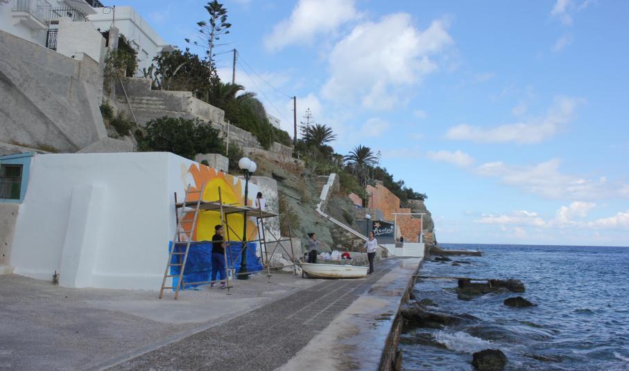 Ανάμεσα σε έξι σχέδια, τα οποία και κατέθεσαν προς τα μέλη του Λιμενικού Ταμείου και τα οποία σχετίζονται με τη θάλασσα, το φως κι εν γένει το θαλασσινό τοπίο, επελέγη εκείνο που θεωρήθηκε πως θα ταιριάζει περισσότερο στο σημείο, με τις πρώτες εργασίες των μαθητών να έχουν δώσει ήδη το στίγμα του εικαστικού αποτελέσματος.