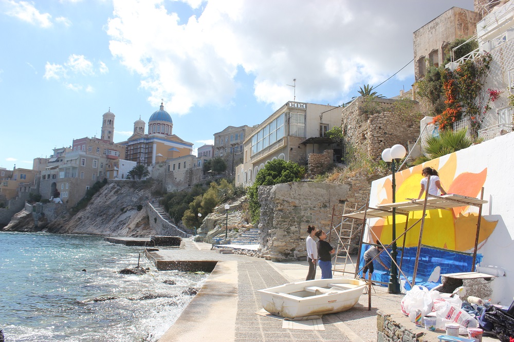 Τη δημιουργική πρότασή τους γνωστοποίησαν πρωτίστως στο Δημοτικό Λιμενικό Ταμείο Σύρου, με τη διοίκηση να αποδέχεται με ιδιαίτερη ικανοποίηση τη σκέψη τους, δίνοντας την έγκριση να προχωρήσουν οι μαθητές στην εικαστική παρέμβαση.
