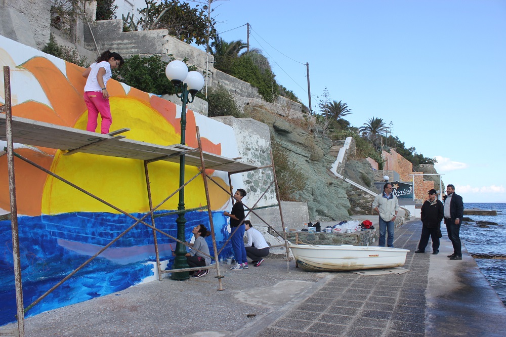Πλάι στη γαληνεμένη θάλασσα, οι μαθητές σχετικά με την εν λόγω δραστηριότητά τους ανέφεραν στην εφημερίδα πως, αυτή γεννήθηκε καθώς, “Θεωρούσαμε “γυμνό” το πλάνο της παραλίας κι επειδή δεν είχε πάρει κάποιος την πρωτοβουλία μέχρι σήμερα και υπήρχε ο συγκεκριμένος κενός τοίχος θεωρήσαμε ότι θα ήταν όμορφο να βάλουμε χρώμα και να δημιουργήσουμε ένα σχέδιο που θα ταιριάζει αρμονικά με τη θάλασσα και θα γαληνεύει τους επισκέπτες που απολαμβάνουν το μπάνιο και τον καφέ τους. Σκεφτήκαμε να το κάνουμε πράξη και το Λιμενικό Ταμείο δέχθηκε”.