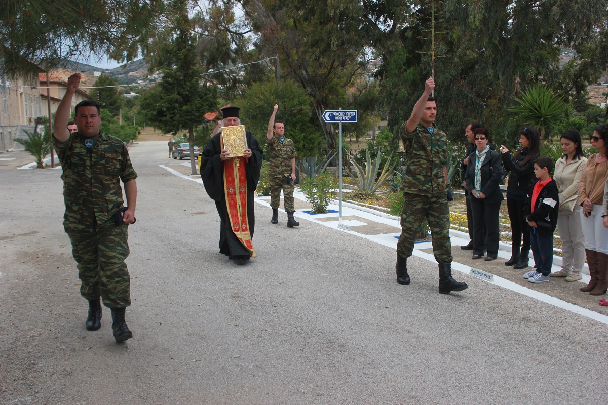 Με μία απλή και σεμνή τελετή τιμήθηκε και φέτος ο προστάτης του πεζικού και του στρατού ξηράς, Άγιος Γεώργιος στο Στρατόπεδο “Λγου Ζαφείρη Αποστόλου” στη Σύρο.