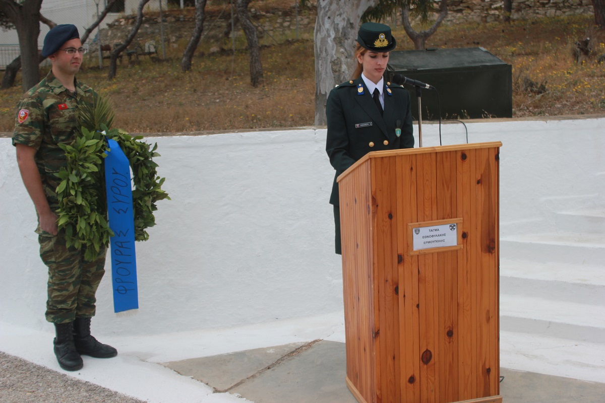Η τελετή ολοκληρώθηκε με κατάθεση Στεφάνου από το Διοικητή του Τάγματος Εθνοφυλακής Ερμούπολης, σιγή ενός λεπτού και ανάκρουση του Εθνικού Ύμνου.