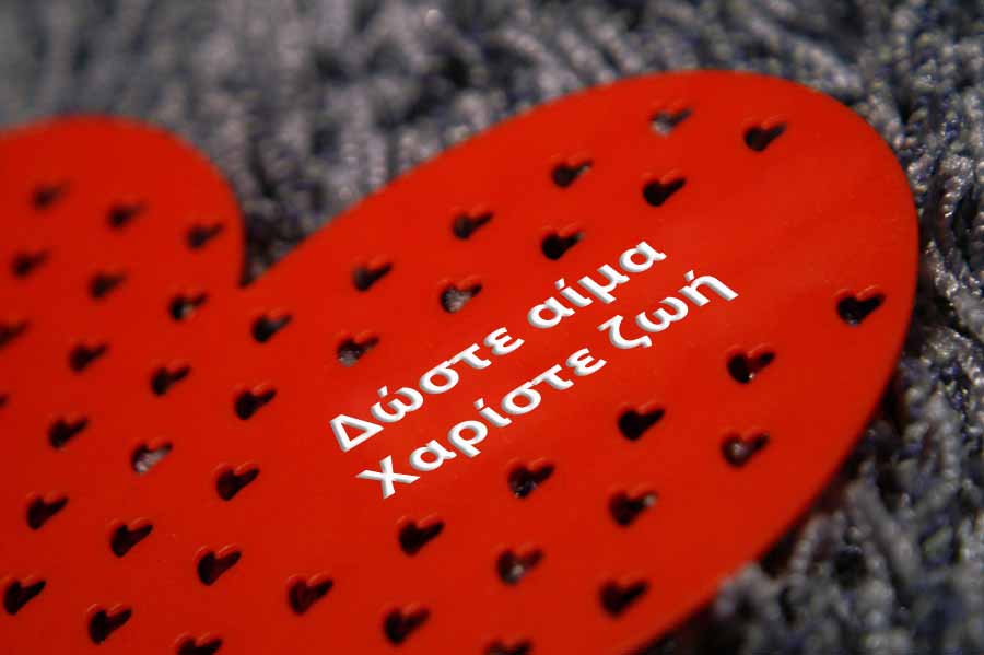 "Φίλοι Αιμοδότες, δώστε με το αίμα σας για άλλη μια φορά τη ζωή και τη χαρά σε αυτούς που το έχουν ανάγκη. Θα σας ευγνωμονούν. Σας περιμένουμε μ’ έναν καινούριο φίλο σας."