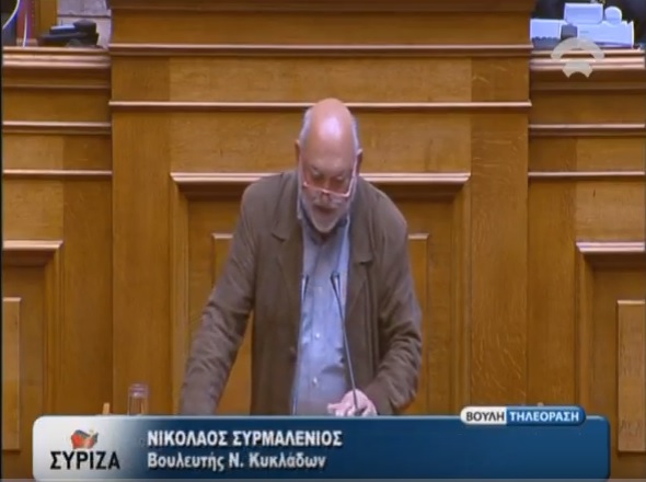 Τα μέτρα που περιλαμβάνονται στο ασφαλιστικό-φορολογικό νομοσχέδιο, καθώς και τις προσπάθειες της κυβέρνησης εν μέσω έντονων πιέσεων από την πλευρά των δανειστών για προστασία των συντάξεων, καθώς και των χαμηλών και μεσαίων εισοδημάτων ανέφερε ο βουλευτής Κυκλάδων Νίκος Συρμαλένιος, στην ομιλία του στην Ολομέλεια της Βουλής, κατά την συζήτηση του νομοσχεδίου.