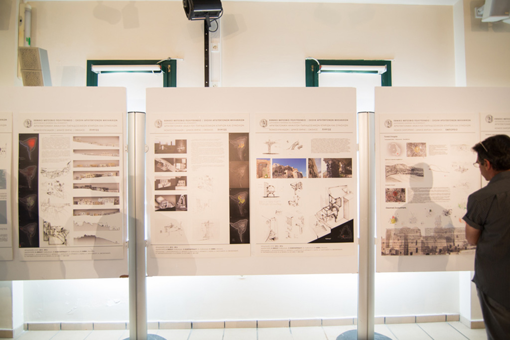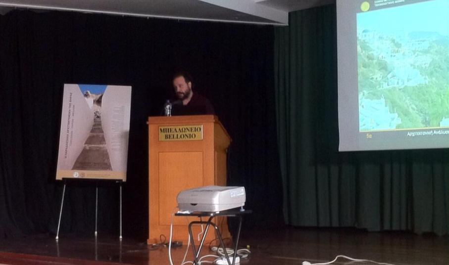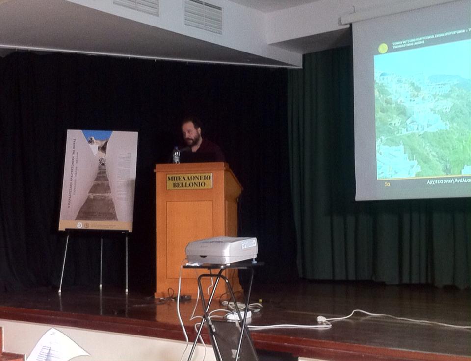 Σε μία γεμάτη αίθουσα στο Μπελλώνειο Πολιτιστικό κέντρο πραγματοποιήθηκε το Σάββατο 7 Μαΐου 2016, η παρουσίαση των σπουδαστών του Εθνικού Μετσόβιου Πολυτεχνείου με θέμα την Παραδοσιακή Αρχιτεκτονική της Θήρας, όπως καταγράφηκε τον περασμένο Οκτώβριο στο πλαίσιο του μαθήματος τους «Αρχιτεκτονική Ανάλυση Παραδοσιακών Κτιρίων και Συνόλων».