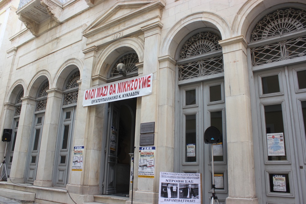 Το Εργατοϋπαλληλικό Κέντρο Κυκλάδων καταγγέλλει την απρόκλητη επίθεση των δυνάμεων καταστολής και τη στοχευμένη βία που ασκήθηκε χθες έξω από την Βουλή, ενάντια στους συγκεντρωμένους που διαδήλωναν κατά του Ασφαλιστικού – Φορολογικού νομοσχεδίου της Κυβέρνησης.