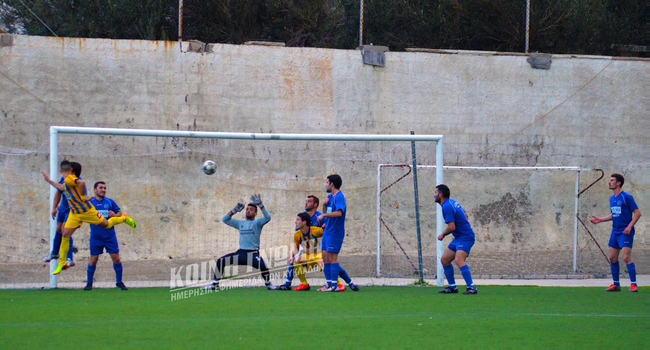 Στο 17' ο μεγάλος πρωταγωνιστής της Σαββατιάτικης αναμέτρησης Ιάκωβος Σταματίου με ωραία κεφαλιά μέσα από την μικρή περιοχή, έπειτα την σέντρα από τα δεξιά της επίθεσης του Α.Ο. Σύρου, άνοιξε το σκορ για την ομάδα του (1-0).
