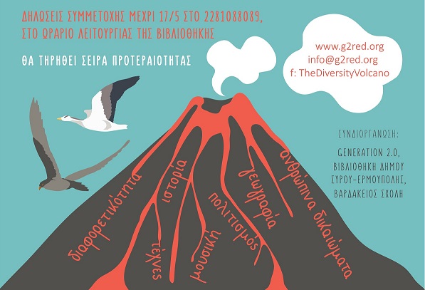 Η Δημοτική Βιβλιοθήκη, η Βαρδάκειος Σχολή και η Μη Κυβερνητική Οργάνωση Generation 2.0 for Rights, Equality and Diversity συνεργάζονται για να φέρουν στη Σύρο το παιχνίδι The Diversity Volcano – Το Ηφαίστειο της Διαφορετικότητας, ένα πρωτοποριακό παιχνίδι που χρησιμοποιείται ως εναλλακτικό εκπαιδευτικό εργαλείο με στόχο την κατανόηση και την εξοικείωση των μαθητών με έννοιες όπως αυτή της διαφορετικότητας, της διαπολιτισμικότητας και των ανθρωπίνων δικαιωμάτων!