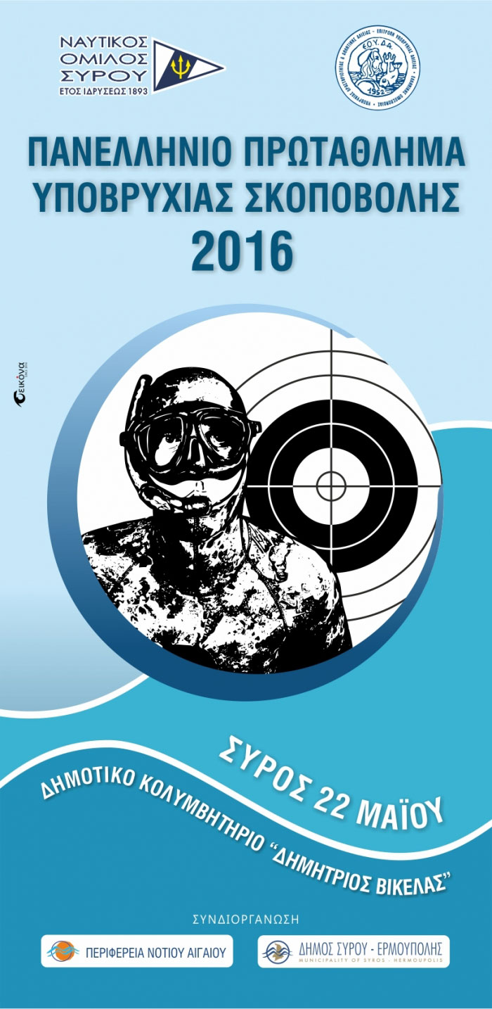 Ο Ν.Ο Σύρου κατόπιν ανάθεσης της ΕΟΥΔΑ θα διοργανώσει το Πανελλήνιο Πρωτάθλημα Υποβρύχιας Σκοποβολής για το 2016.