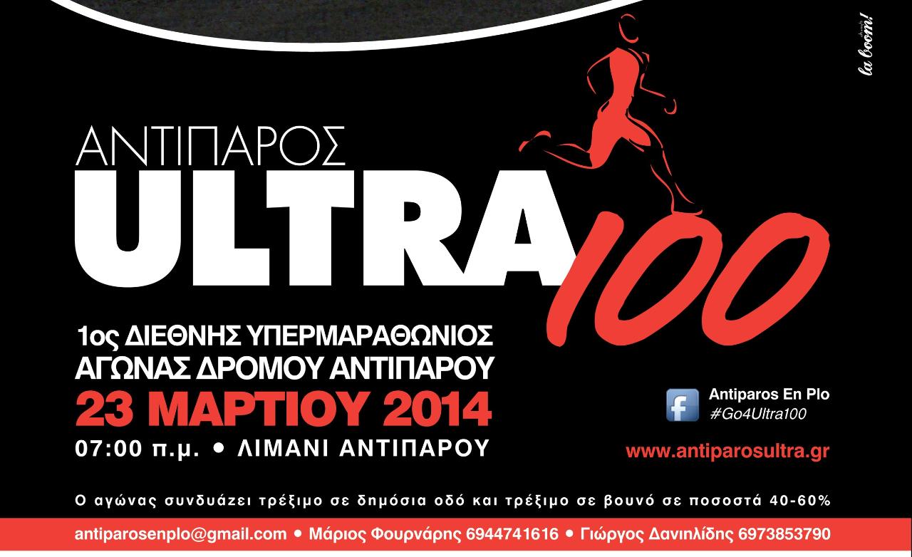 Δυο εβδομάδες έμειναν για τον 1ο διεθνή αγώνα Αντίπαρος Ultra 100 (#Go4Ultra100) που θα πραγματοποιηθεί στις 23 Μαρτίου.