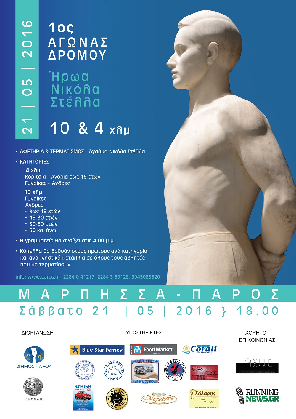 Ο Δήμος Πάρου, η ΚΔΕΠΑΠ και η Δημοτική Κοινότητα Μάρπησσας, με την υποστήριξη του Συλλόγου Γυναικών Μάρπησσας, του ΑΜΕΣ Μαρπησσαϊκού και της Εθελοντικής ομάδας δράσης Μάρπησσας διοργανώνουν τον 1ο αγώνα δρόμου προς τιμή του ήρωα Νικόλα Στέλλα.