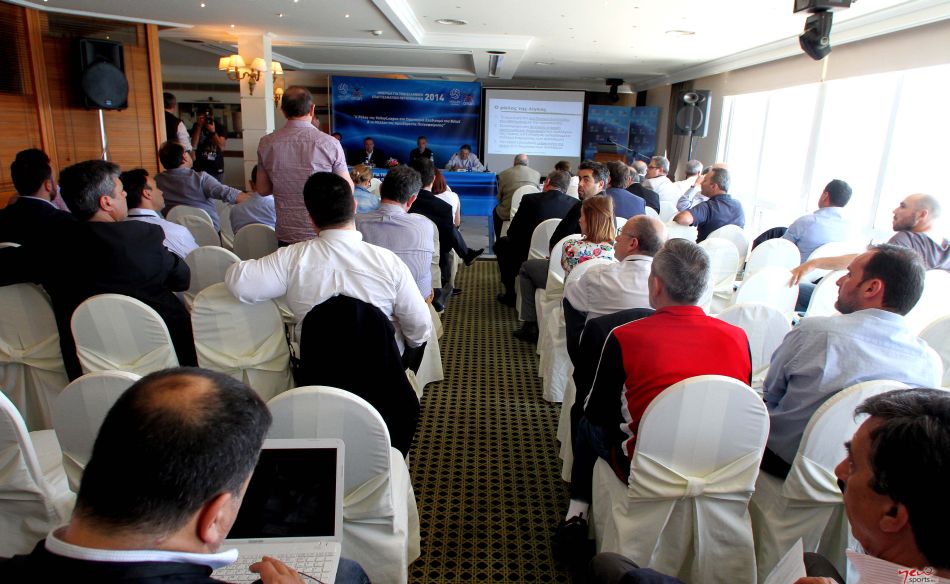 Χαιρετισμός προέδρου ΕΟΠΕ Αχιλλέα Μαυρομάτη:“Είναι μία στιγμή που πραγματικά τα πράγματα καταλαγιάζουν σιγά σιγά, η σκόνη από την κρίση που αντιμετωπίσαμε σε διαφορετικά επίπεδα από το επαγγελματικό και το ερασιτεχνικό βόλεϊ. Διαμορφώνεται ένα νέο πλαίσιο και η σημερινή ημερίδα θα βοηθήσει στο να βγάλουμε συμπεράσματα για το πως μπορούμε να λειτουργήσουμε στο μέλλον. Στην όλη πορεία του ερασιτεχνικού βόλεϊ, σε αυτόν τον γολγοθά που περάσαμε και συνεχίζουμε ακόμα ελπίζοντας πως φτάνουμε προς το τέλος, είχαμε την στήριξη της πολιτείας. Η πολιτεία μας στάθηκε, αισθανθήκαμε και την Ολυμπιακή Επιτροπή. Είχαμε να αντιμετωπίσουμε μία πολύ βίαιη προσαρμογή σε νέα δεδομένα. Τα θέματα του ερασιτεχνικού, με τα θέματα της αμειβόμενης πετοσφαίρισης είναι τελείως διαφορετικά. Θα ήθελα να επισημάνω ότι το επίπεδο του φετινού πρωταθλήματος ήταν εξαιρετικό. Διαπιστώνω ότι έχει μία εικόνα συνεργασίας όλων των πλευρών και είναι πολύ χρήσιμο για να επιβιώσουμε και να έχουμε κάτι καλύτερο στην συνέχεια. Αισθάνομαι ότι στα θέματα που θα λυθούν της αμειβόμενης πετοσφαίρισης, η ομοσπονδία θα είναι δίπλα σας σε ότι ζητήματα προκύψουν. Να πω επίσης ότι αφήνω ανοιχτό το θέμα γιατί και εμείς τελειώσαμε την Κυριακή ένα πρωτάθλημα Α2 στο οποίο τελικά έγιναν πολύ ωραίοι αγώνες με ένα ωραίο τέλος, μετά από μία σειρά δύσκολων αγώνων. Θα ήθελα να αφήσω ανοιχτό το θέμα του υποβιβασμού των ομάδων. Δεδομένο είναι ότι θα στηρίξουμε τις προσπάθειες της Εθνικής μας ομάδας και των ανδρών και των γυναικών. Πιστεύω ότι με τον προκριματικό όμιλο που διοργανώνουμε στο τέλος αυτού του μήνα στο Ρέντη, έχουμε την δυνατότητα να επανέλθουμε στα σαλόνια του Ευρωπαϊκού βόλεϊ και εμείς σαν ομοσπονδία στην 1 Ιουνίου, μία πρόταση που έγινε, θα διοργανώσουμε μία αντίστοιχη ημερίδα για τις υποδομές του αντρικού βόλεϊ. Για να βρούμε λύσεις και να ακούσουμε προτάσεις ανάπτυξης του ανδρικού βόλεϊ σε πολύ μικρές ηλικίες για να αυξηθεί ο αριθμός των παιδιών”.