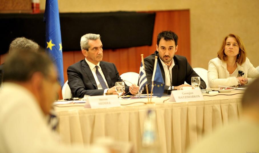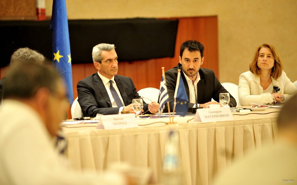 Ο Περιφερειάρχης Νοτίου Αιγαίου κ. Γιώργος Χατζημάρκος εξελέγη ομόφωνα Πρόεδρος της Επιτροπής Νήσων του Διευρωπαϊκού Δικτύου των Παράκτιων Περιοχών της Ευρώπης (CPMR), στην διάρκεια των εργασιών της Γενικής Συνέλευσης της Επιτροπής, που διεξάγονται στην Ρόδο, στο ξενοδοχείο Rodos Palace, παρόντος του κ. Αλέξη Χαρίτση, Υφυπουργού Οικονομίας, Ανάπτυξης και Τουρισμού, αρμόδιου για θέματα ΕΣΠΑ.