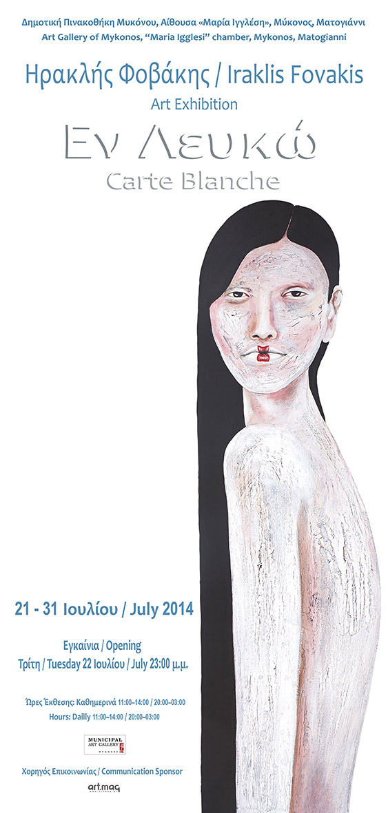 Την νέα του ατομική έκθεση ζωγραφικής «Εν Λευκώ» παρουσιάζει ο ζωγράφος και εικαστικός Ηρακλής Φοβάκης στη Δημοτική Πινακοθήκη της Μυκόνου από 21 έως 31 Ιουλίου.