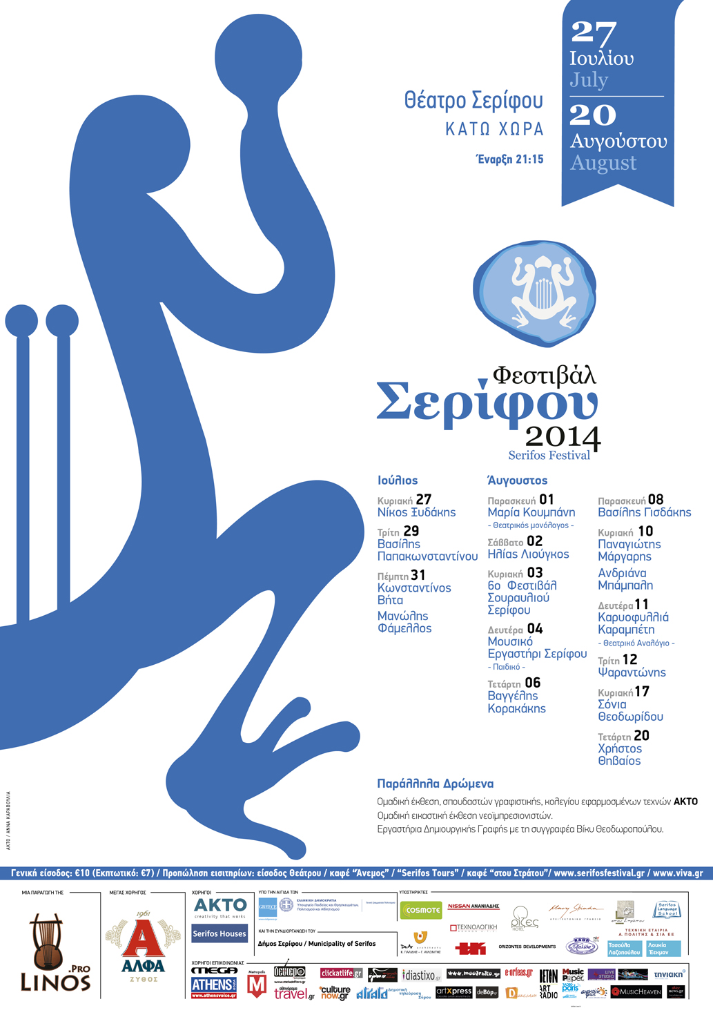 Με τον Νίκο Ξυδάκη ανοίγει το φεστιβάλ Σερίφου 2014 την Κυριακή 27 Ιουλίου στις 21:15 στον ιδιαίτερα φιλόξενο χώρο του αμφιθέατρου του Θεάτρου της Κάτω Χώρας.