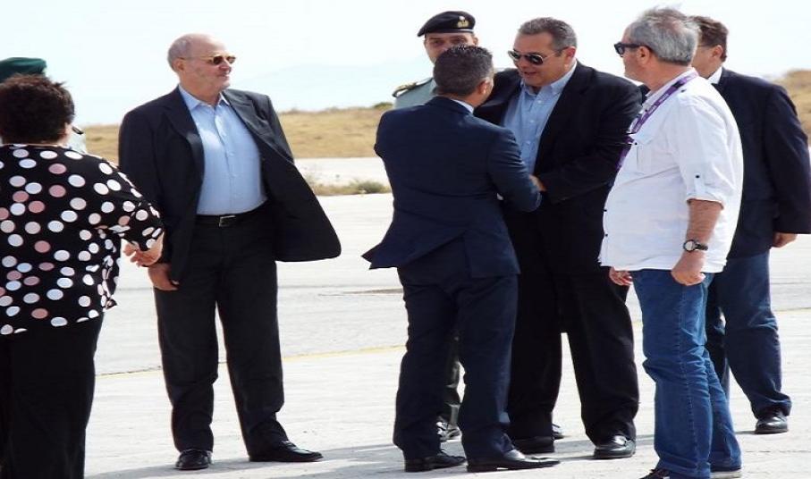 Στο αεροδρόμιο της Σύρου, με ελικόπτερο, το οποίο πιλοτάρισε ο ίδιος, μέχρι τη Σύρο, αφίχθη το πρωί της Τρίτης, ο Υπουργός Εθνικής Αμύνης, κ. Πάνος Καμμένος, συνοδευόμενος από τον Γενικό Γραμματέα, καθώς και μερικά ακόμη στελέχη του Υπουργείου, όπου συναντήθηκαν με τον Δήμαρχο Σύρου - Ερμούπολης, κ. Γιώργο Μαραγκό, εκπροσώπους των Αρχών του νησιού και μέλη του Δημοτικού Συμβουλίου.