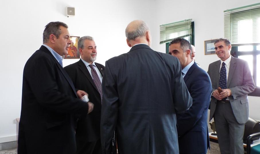 Αμέσως μετά τη σύντομη κουβέντα και την ανανέωση του ραντεβού για την επόμενη εβδομάδα, ο κ. Καμμένος, τα στελέχη του Υπουργείου, ο Δήμαρχος, οι εκπρόωσωποι των Αρχών και τα μέλη του Δήμου Σύρου - Ερμούπολης, κατευθύνθηκαν προς το Δημαρχειακό Μέγαρο.