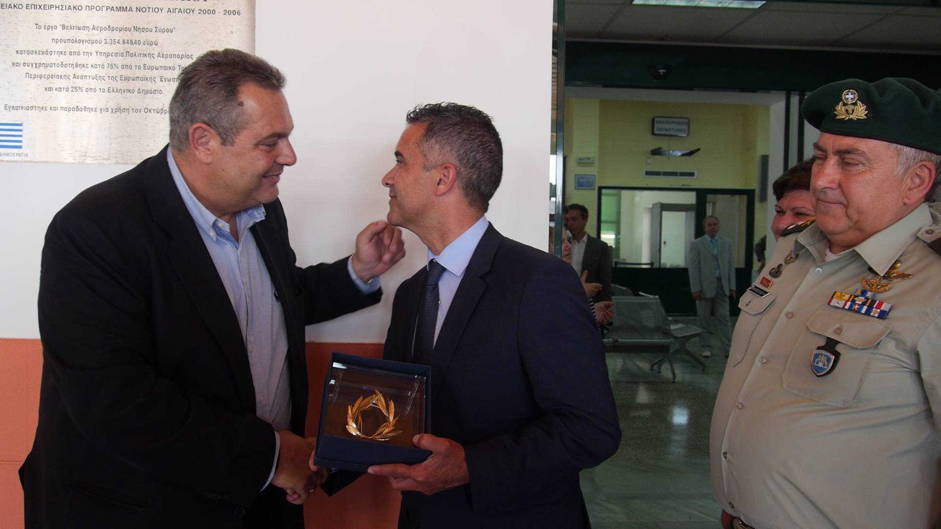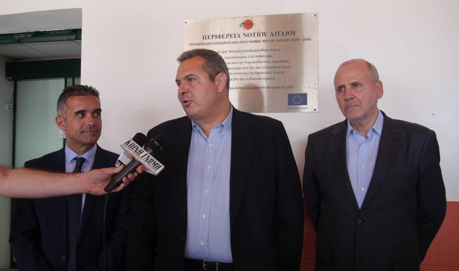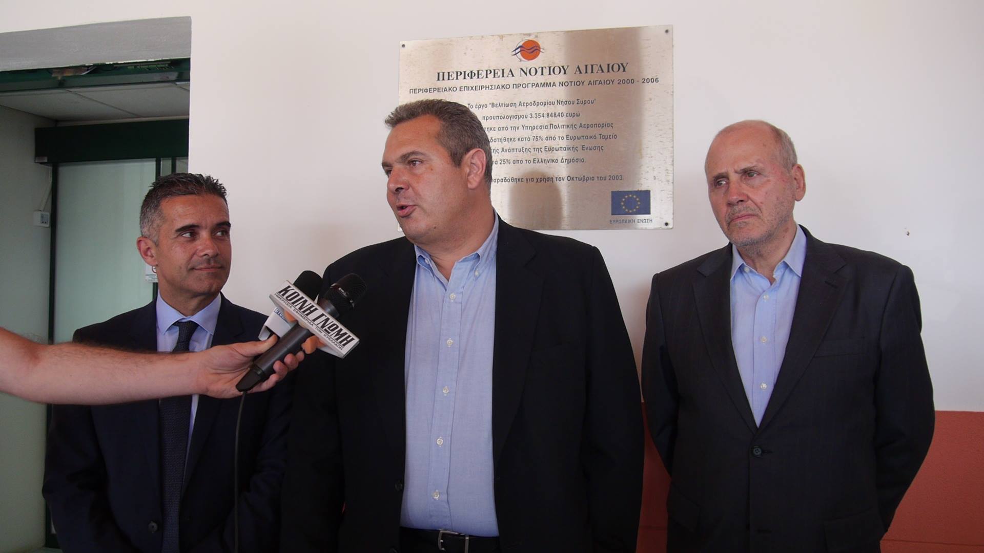 Αναχώρησε σήμερα το μεσημέρι από τη Σύρο ο Υπουργός Εθνικής Άμυνας, Πάνος Καμμένος, προβαίνοντας σε λιτές δηλώσεις στο χώρο του αεροδρομίου στο πλαίσιο των οποίων έκανε ξεκάθαρη μνεία για την αντισυνταγματικότητα της απόφασης κατάργησης του νησιώτικου ΦΠΑ.