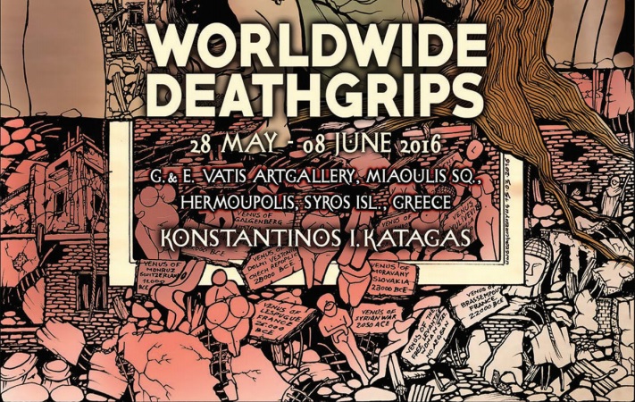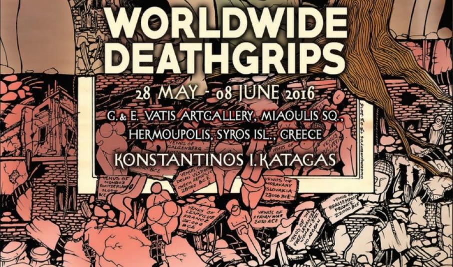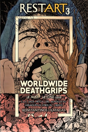 Ο Δήμος Σύρου Ερμούπολης παρουσιάζει την ενότητα σχεδίων “human deathgrips worldwide” στο πλαίσιο του 3ου χρόνου της δράσης rest[art], που φέτος θα πραγματοποιηθεί στην αίθουσα τέχνης Ε. & Γ. Βάτη, στην πλατεία Μιαούλη της Ερμούπολης. Η έκθεση ανοίγει την 28 Μάη 2016, ώρα 20:30 και κλείνει την 08 Ιουνίου το βράδυ. Ώρες επίσκεψης: 10:30 έως 14:00 και 20:00 έως 22:30.
