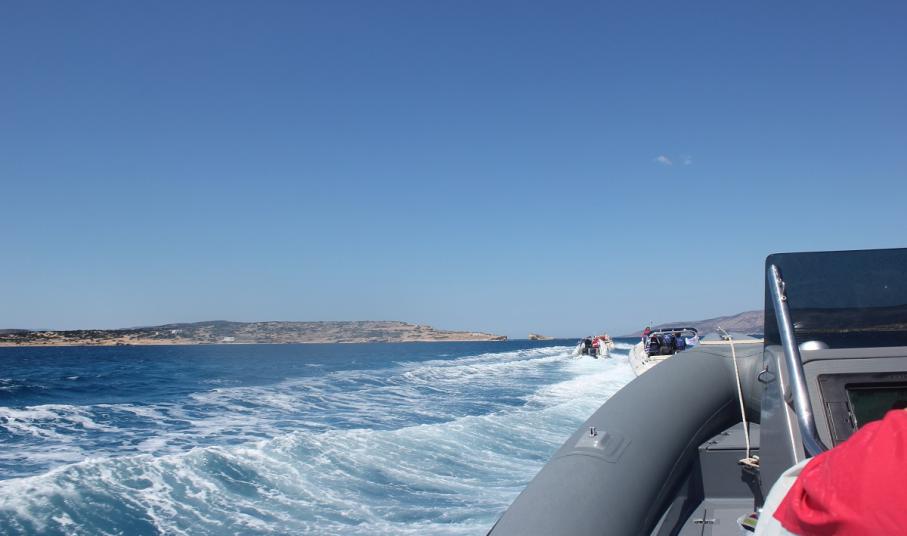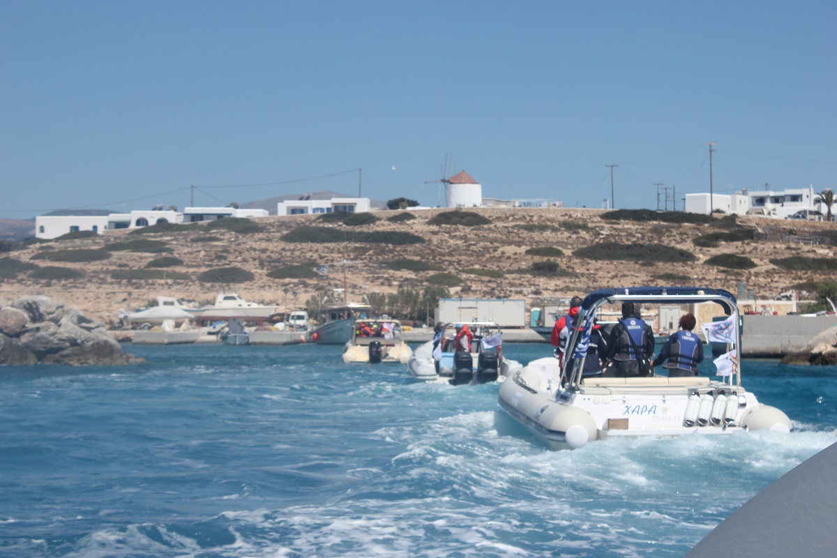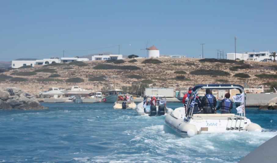 Θερμή ήταν η υποδοχή που επεφύλαξε η τοπική κοινωνία του Κουφονησίου στον Όμιλο Φουσκωτών και Ταχυπλόων Σκαφών Σύρου, ο οποίος πραγματοποιεί τη δεύτερη αποστολή του στο Κυκλαδίτικο νησί με τα κοραλένια νερά.