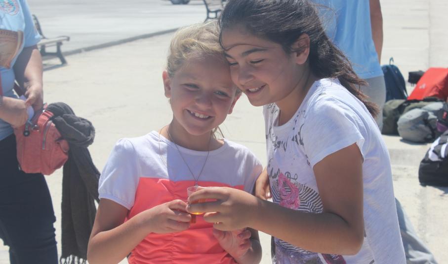 Ο πρόεδρος της Τοπικής Κοινότητας Αντώνης Κωβαίος, κάτοικοι και παιδιά του Νηπιαγωγείου και του Δημοτικού Σχολείου Κουφονησίου, συνοδευόμενα από τις εκπαιδευτικούς τους καλωσόρισαν χθες το πρωί στο λιμάνι τα μέλη του Ομίλου, καθώς και την ομάδα του προγράμματος Κυκλάδες Life της WWF, που συμμετέχει αυτόνομα με ενημερωτικές δράσεις και εκπαιδευτικά παιχνίδια.