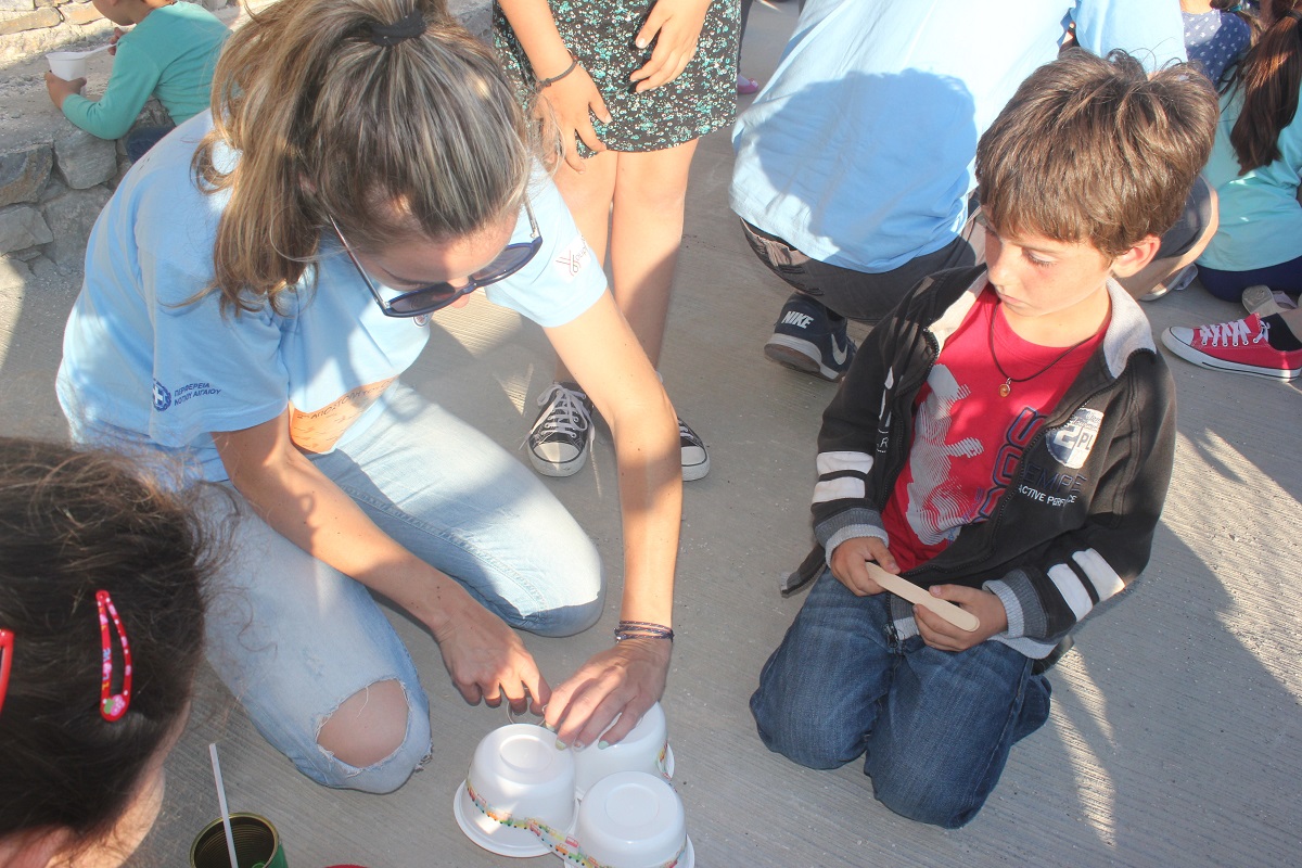 Οι μικροί μαθητές εξέφρασαν τη χαρά και την ανυπομονησία τους για το πλούσιο πρόγραμμα εκδηλώσεων που ετοίμασαν οι παιδαγωγοί και τα μέλη της θεατρικής ομάδας του Ομίλου, που σήμερα το απόγευμα παρουσιάζει στο Δημοτικό Σχολείο του νησιού το έργο «Έσπασε ο βυθός, Κρακ», με την επιμέλεια της Γεωργίας Ματσούκα.