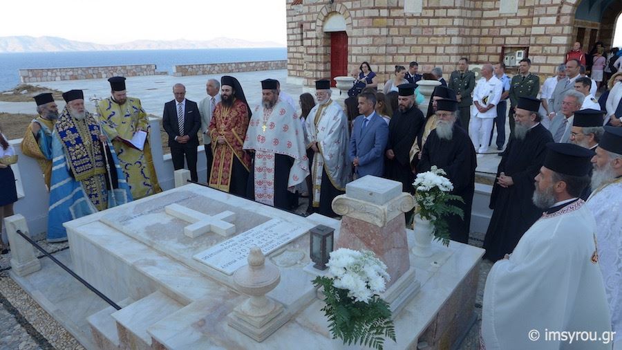 Πριν από την έναρξη του εσπερινού τελέσθηκε τρισάγιο στον τάφο του αοιδίμου Μητροπολίτη Σύρου, Φιλάρετου (κτίτορος του Ναού) ενώ αμέσως μετά οι πιστοί προχώρησαν στο προσκύνημα των εικόνων του Αγίου Δημητρίου και της Παναγίας της Κανάλας.