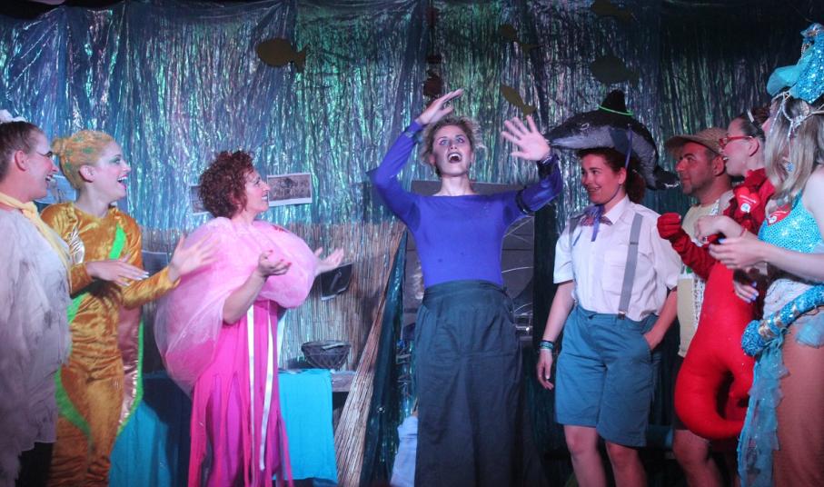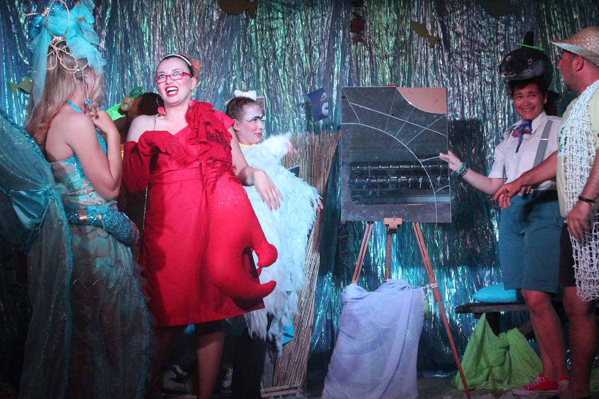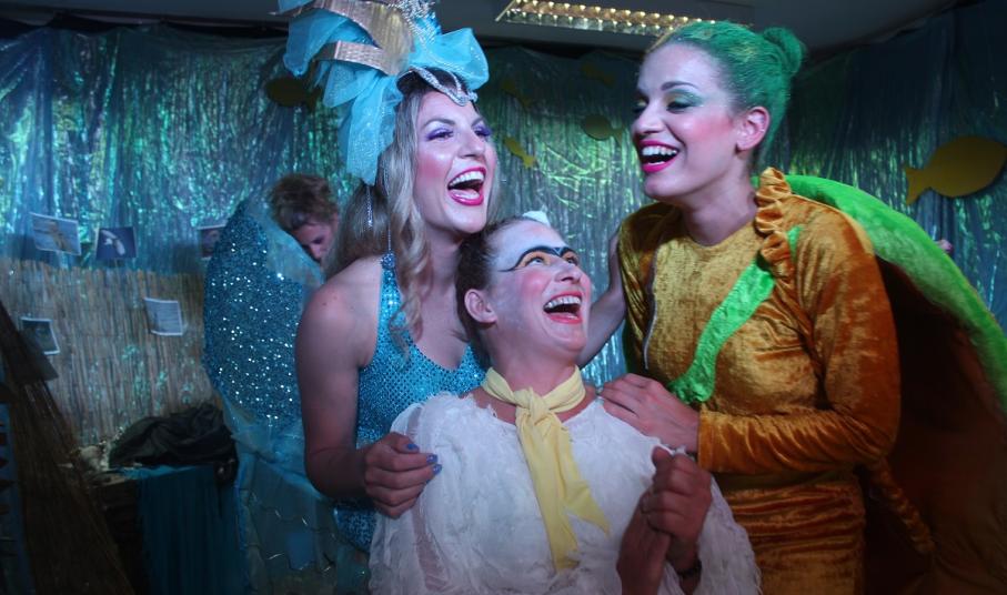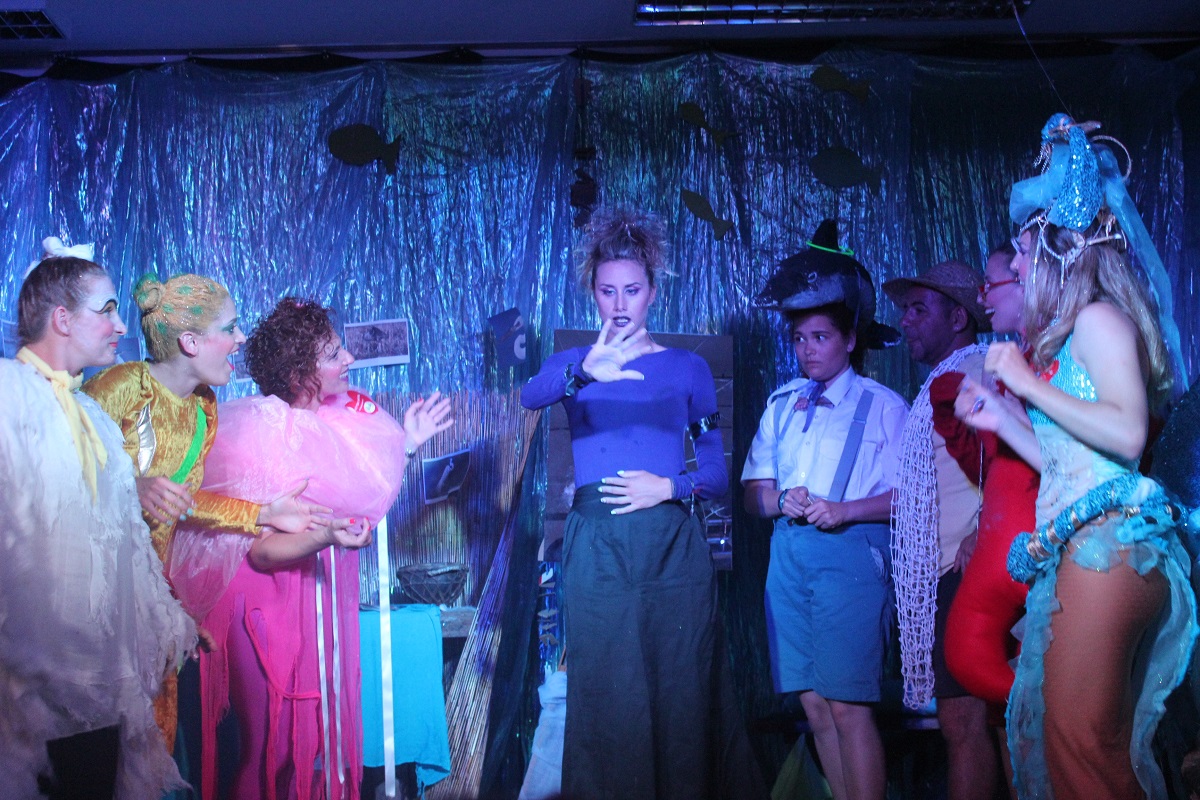 Νωρίς το απόγευμα, τα παιδιά με τη βοήθεια της Γοργόνας, του Τάσου του Ψαρά, της Χελώνας, του Δελφινιού, της Τσούχτρας και του Ερωδιού από τη θεατρική παράσταση του Ομίλου, ανακάλυψαν το «μυστικό του βυθού» χορεύοντας, παίζοντας και κατασκευάζοντας τα δικά τους μουσικά όργανα στους χώρους της παραλίας και του λιμανιού.