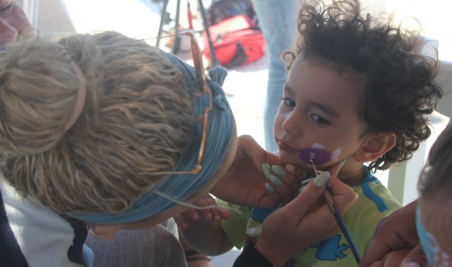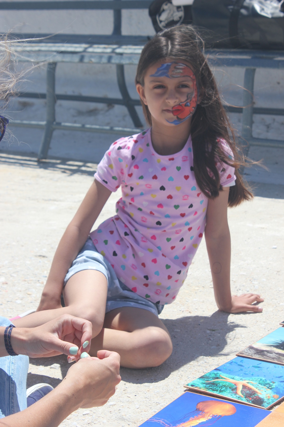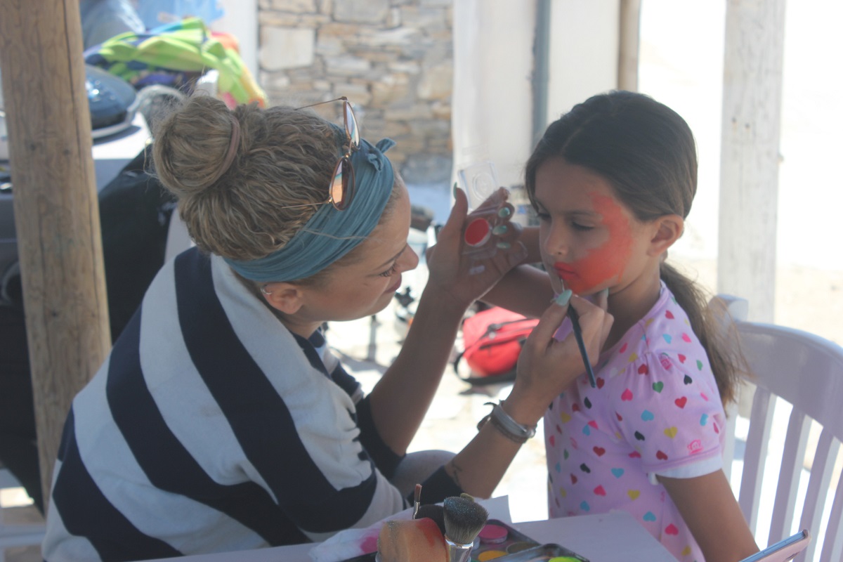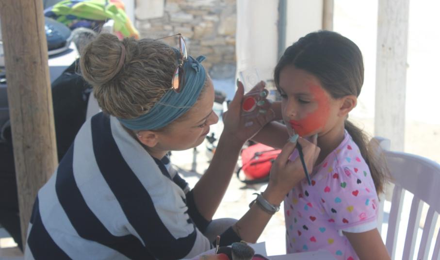 Παράλληλα, οι παιδαγωγοί και τα μέλη του Ομίλου Φουσκωτών και Ταχυπλόων Σκαφών Σύρου έπαιξαν με τους μαθητές τόμπολα δαπέδου και έβαψαν το πρόσωπό τους, αποκτώντας θαλασσινές φατσούλες, βασισμένες στους ήρωες της θεατρικής παράστασης «Έσπασε ο βυθός. Κρακ».