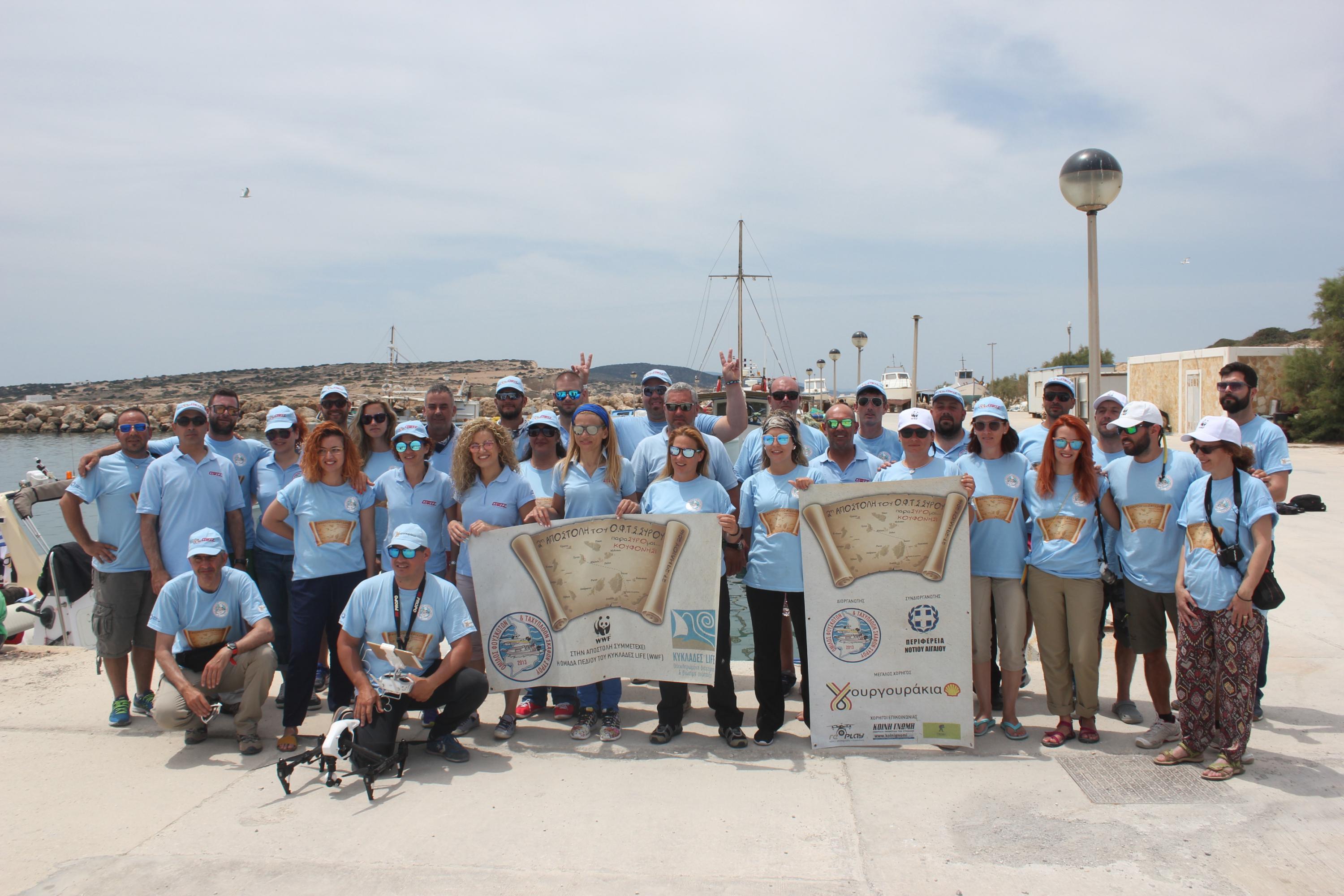 Με κεράσματα και ανοιχτές αγκάλες, ο πρόεδρος της Δημοτικής Κοινότητας Αντώνης Κωβαίος, κάτοικοι, μαθητές και εκπαιδευτικοί του Νηπιαγωγείου και του Δημοτικού Σχολείου Κουφονησίου, υποδέχτηκαν το πρωί της περασμένης Παρασκευής στο λιμάνι τα πέντε σκάφη του Ομίλου, αλλά και την ομάδα του προγράμματος Κυκλάδες Life του WWF, που συμμετείχε αυτόνομα με ενημερωτικές δράσεις και εκπαιδευτικά παιχνίδια.