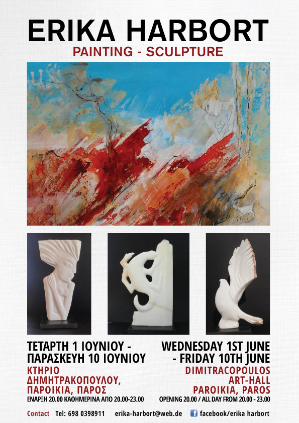 Έργα ζωγραφικής, αλλά και σπουδαία γλυπτά δια χειρός της Erika Harbort θα έχουν την ευκαιρία να απολαύσουν οι κάτοικοι και οι επισκέπτες της Πάρου.