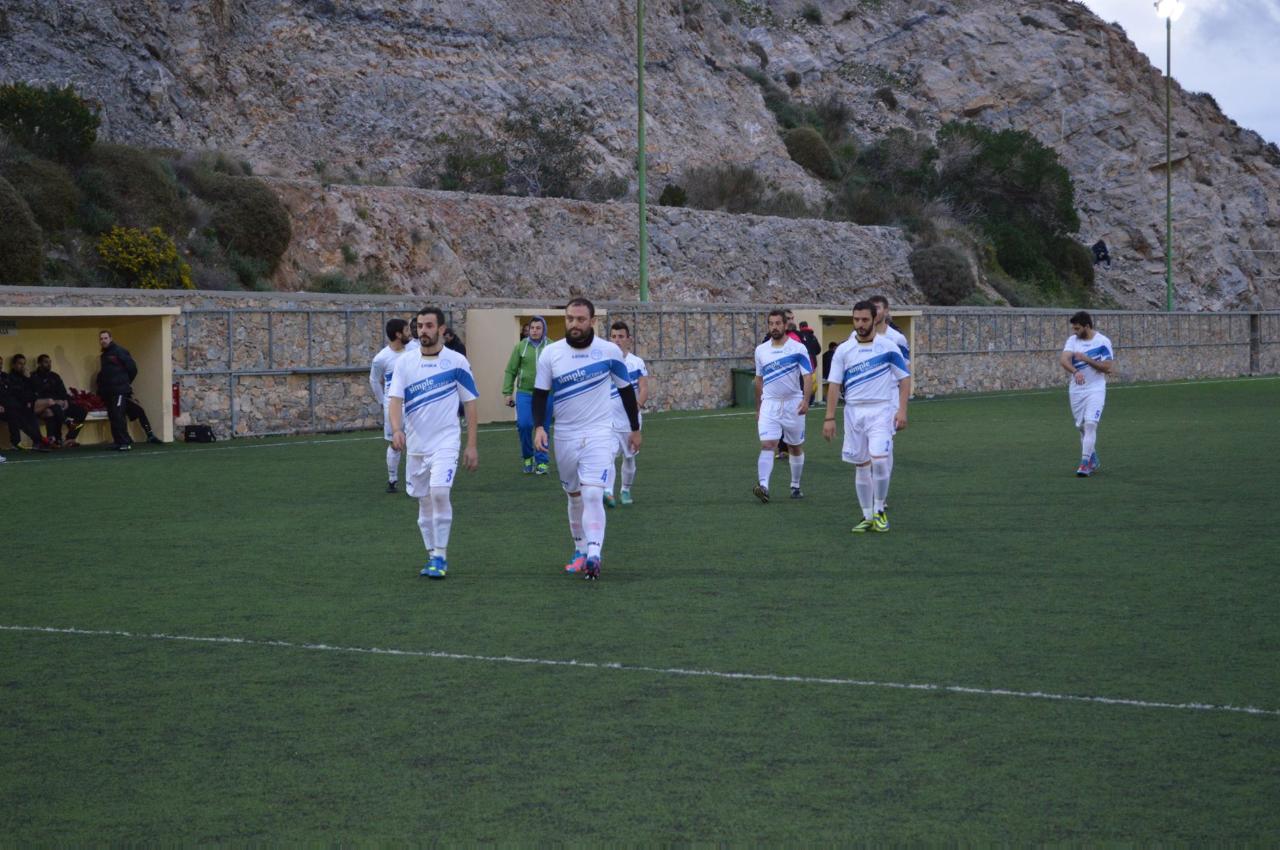 Η Άνω Μερά ήταν καλύτερη καθ' όλη τη διάρκεια της αναμέτρησης με τον Πάγο και δίκαια πήρε τη νίκη-τρίποντο με 1-0. Οι Μυκονιάτες θα μπορούσαν να είχαν πετύχει κι άλλα τέρματα κατά τη διάρκεια του αγώνα, αφού είχαν τις ευκαιρίες να σκοράρουν. Στο 25' ο Πετράι σημάδεψε το οριζόντιο δοκάρι του Λοΐσιου και έξι λεπτά αργότερα ο Τσάλμας σπατάλησε άλλη μία ευκαιρία για τους γηπεδούχους. Το ημίχρονο βρήκε την Άνω Μερά μπροστά στο σκορ, αφού στο 10' ο Αναγνωστόπουλος σε μία άτυχη στιγμή, όπου η μπάλα βρήκε στο πόδι του και κατέληξε στα δίχτυα της ομάδας του. Βέβαια μερίδιο ευθύνης σύμφωνα με τους παρευρισκόμενους έχει και ο τερματοφύλακας του Πάγου, όπου δεν έκανε καλή έξοδο.