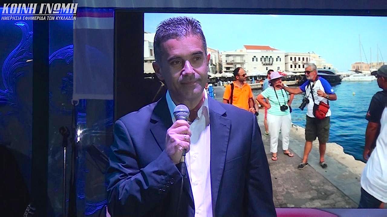 Ο Υπεύθυνος δημοσίων σχέσεων της ΕΟΜΟΦΣ Βαγγέλης Τρίκας χαιρέτησε στην εκδήλωση και τόνισε πόσο σημαντικό μέλος είναι ο Όμιλος Φουσκωτών και Ταχυπλόων Σκαφών Σύρου.