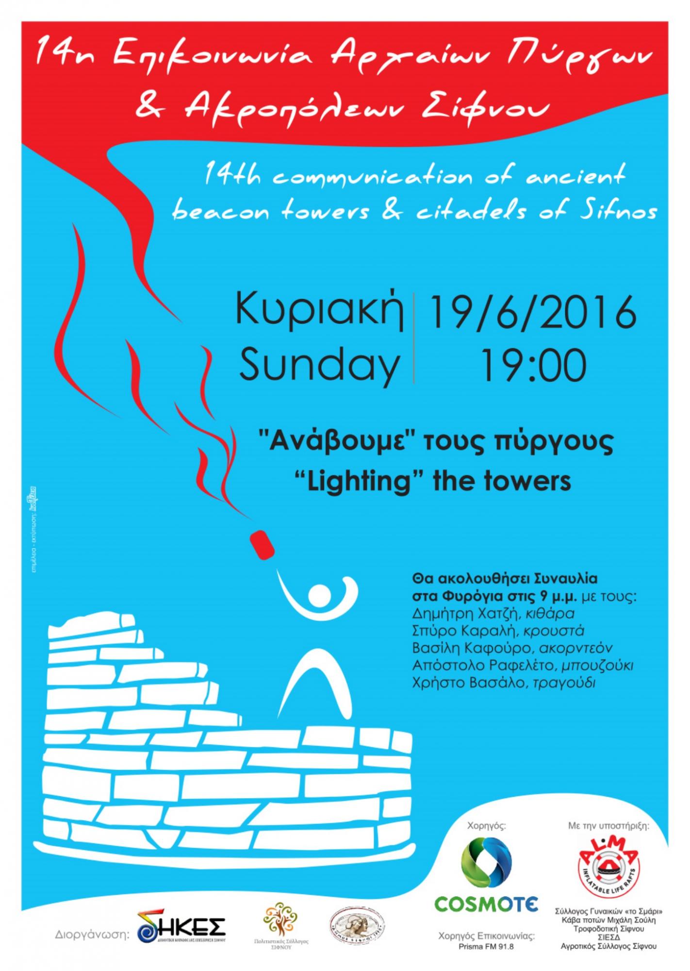 Για 14η χρονιά, ο Δήμος Σίφνου, η Κοινωφελής του Επιχείρηση και ο Πολιτιστικός Σύλλογος Σίφνου και εκατοντάδες εθελοντές αναβιώνουν το αρχαίο σύστημα επικοινωνίας των φρυκτωριών σε περισσότερα από 80 σημεία σε όλο το νησί.