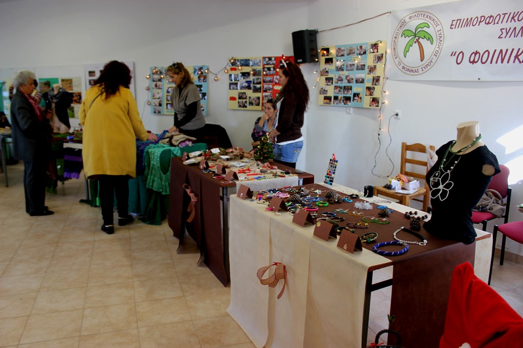 Την Κυριακή, 21 Δεκεμβρίου, ο Επιμορφωτικός-Φιλοτεχνικός Σύλλογος Φοίνικα διοργάνωσε το 1ο Φιλανθρωπικό Χριστουγεννιάτικο Bazaar Χειροποίητου, όπου μέλη αλλά και φίλοι του συλλόγου, διαθέτοντας προς πώληση τις χειροποίητες δημιουργίες τους σε αξεσουάρ και χριστουγεννιάτικα στολίδια, συγκέντρωσαν χρήματα για την ενίσχυση του Νοσοκομείου της Σύρου, ενώ δεν απέκλεισαν την επανάληψη ανάλογου τύπου δράσεων και στο μέλλον, για φιλανθρωπικούς, πάντα, σκοπούς.