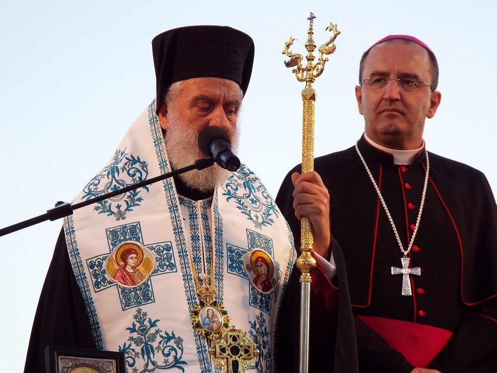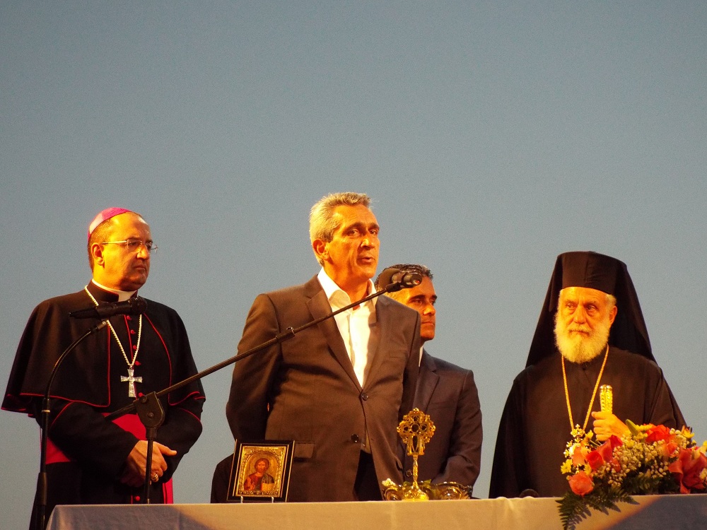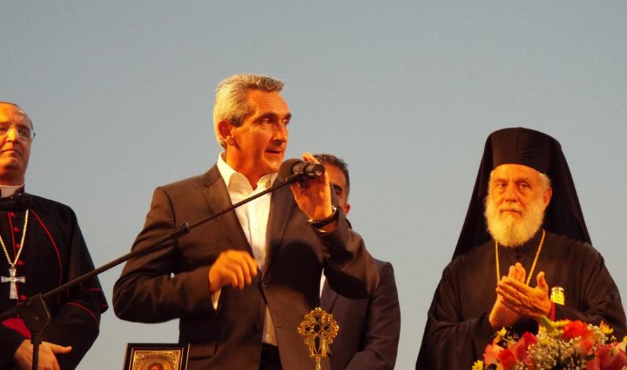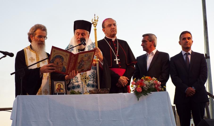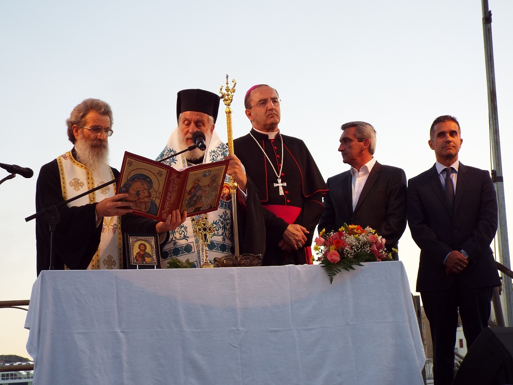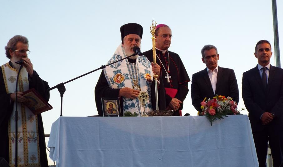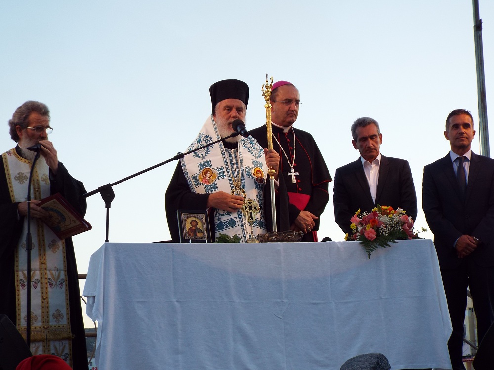 Χαιρετισμό επίσης απηύθυνε και ο Επίσκοπος της Καθολικής Εκκλησίας, π. Πέτρος Στεφάνου, ο οποίος σημείωσε, πως παρά την πολύμηνη ταλαιπωρία κατοίκων και επιχειρηματιών, παραδώθηκε στο νησί ένα άρτιο έργο, που βελτιώνει την εικόνα του. Ευχαρίστησε όλους, όσοι συνέβαλλαν στην υλοποίηση αυτού του έργου, ενώ ευχήθηκε στη δημοτική αρχή τη συνέχιση των έργων προς όφελος των κατοίκων της Σύρου.