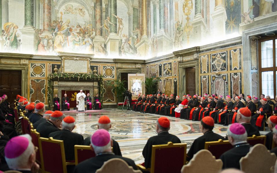 Ο Πάπας είπε βαριές κουβέντες στους ανθρώπους της Κουρίας, τους αποκάλεσε ούτε λίγο ούτε πολύ «εχθρούς του σταυρού του Χριστού». Μίλησε στην Κουρία για την Κουρία, με λόγια αληθινά και όχι με εθιμοτυπικές ψευτιές. Είπε αυτά που ξέρουμε όλοι για την Κουρία και εν γένει για τις εκκλησιαστικές γραφειοκρατίες όλων των χριστιανικών Εκκλησιών. Διαβάζοντας την ομιλία του, είχα την εντύπωση ότι αναφερόταν σε επισκόπους και αρχιμανδρίτες Ορθοδόξων Εκκλησιών. Οι παρόντες καρδινάλιοι και επίσκοποι χειροκρότησαν χλιαρά, οι περισσότεροι ενοχλήθηκαν. Ο Πάπας Φραγκίσκος έχει ξεκινήσει ήδη τη μεταρρύθμιση της Κουρίας. Είναι αποφασισμένος, παρά τις αντιδράσεις, να την συνεχίσει και να την ολοκληρώσει. Είναι φανερό ότι παίζει το κεφάλι του. Το ξέρει και δεν τον νοιάζει.