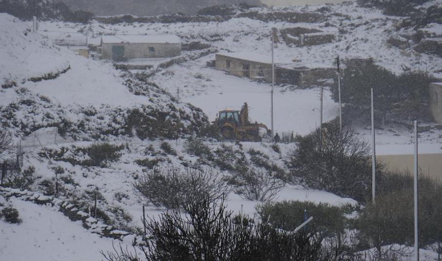 Με σοβαρές βλάβες στην ηλεκτροδότηση της Τήνου, αλλά και με αποκλεισμό τουλάχιστον οκτώ χωριών (Καρδιανή, Υστέρνια, Πάνορμος, Πύργος, Κώμη, Στενή, Φαλατάδος και Τριπόταμος) ήρθαν αντιμέτωποι οι κάτοικοι του νησιού και η Δημοτική Αρχή, αφού η μεγάλης κλίμακας κακοκαιρία σήμανε συναγερμό με τους αρμόδιους του Δήμου να βρίσκονται στις επάλξεις από κοινού με την Αστυνομία, τους ιδιώτες και τους δημότες, προκειμένου να αντεπεξέλθουν στα σοβαρά προβλήματα. Σε γενικές γραμμές, ο δήμαρχος Τήνου, Σίμος Ορφανός, τόνισε πως, εκτιμάται ότι, “το χιόνι στις ορεινές περιοχές ξεπέρασε το ενάμιση μέτρο, με δώδεκα οχήματα συνολικά να επιχειρούν συστηματικά για τη διάνοιξη του οδικού δικτύου επί αρκετές ώρες.