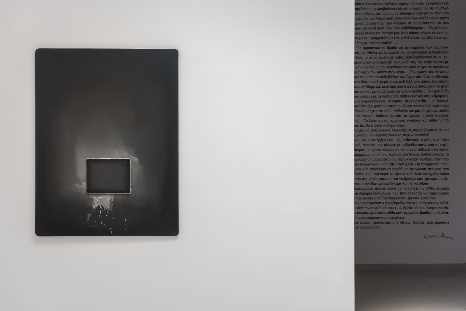 Στη δεύτερη αίθουσα, χώρος αυτοβιογραφικών κειμένων, προσθέσαμε το πορτραίτο της μητέρας του καλλιτέχνη, που ζωγράφισε το 1956.