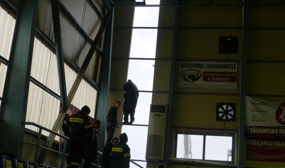 Υπάλληλοι του αθλητικού κέντρου αντιλήφθηκαν το πρόβλημα στην Β’ κλειστή αίθουσα του Αθλητικού Κέντρου και αμέσως ειδοποίησαν τους αρμόδιους αντιδημάρχους, Σταύρο Γουσγουνέλη (Τεχνικές Υπηρεσίες) και Θάνο Φώσκολο (Πολιτισμού και Αθλητισμού). Οι δύο αντιδήμαρχοι κινητοποιήθηκαν άμεσα και βρέθηκαν μαζί με συνεργεία του Δήμου στην Β’ κλειστή αίθουσα, όπως επίσης ο πρόεδρος της αθλητικής επιτροπής Γουλιέλμος Πρίντεζης, αλλά και η Πυροσβεστική Υπηρεσία. Η άμεση επέμβαση αποσόβησε μεγαλύτερους κινδύνους, όπως την αποκόλληση μεγαλύτερου τμήματος πάνελ, που δεν άντεχε στη μανία του καιρού.
