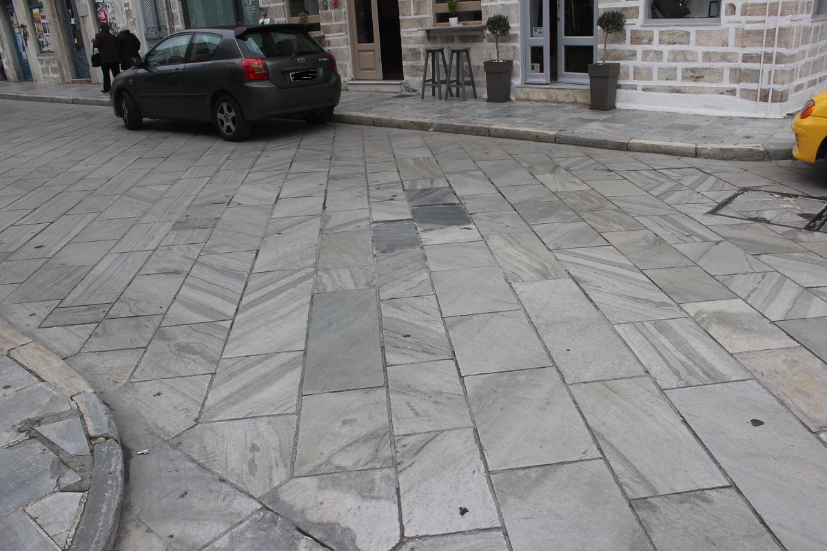 Παρά το γεγονός ότι δεν έχει περάσει μεγάλο χρονικό διάστημα από την περίοδο όπου πραγματοποιήθηκαν εργασίες στο πλαίσιο του έργου αποκατάστασης πλακών του ιστορικού κέντρου Σύρου- Ερμούπολης, παρατηρείται ότι η κατάσταση που επικρατεί στην οδό Ελευθερίου Βενιζέλου δεν είναι η ιδανική.