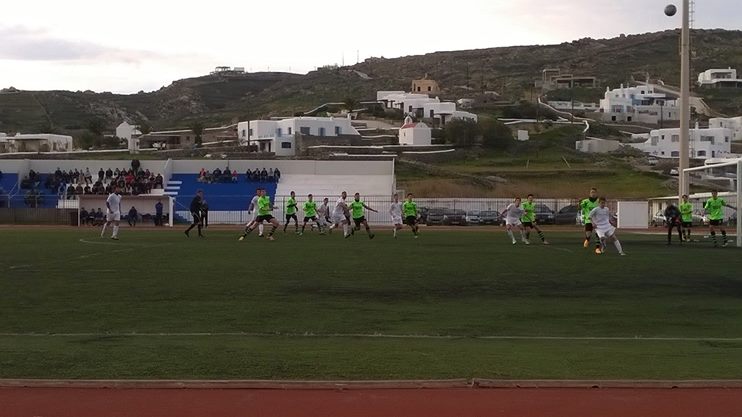 Το σκορ άνοιξε με την απευθείας εκτέλεση φάουλ του Λυκούρη στο 33' που έστειλε τη μπάλα στην γωνία της εστίας του Προκόποβιτς. Λίγα λεπτά αργότερα η Μύκονος κέρδισε πέναλτι. Την εσχάτη των ποινών ανέλαβε να εκτελέσει ο Ράγια αλλά ο τερματοφύλακας της Ανω Μεράς απέκρουσε εντυπωσιακά. Με την έναρξη του δευτέρου ημιχρόνου ο Α.Ο. Μυκονου ουσιαστικά σφράγιζε τη νίκη, καθώς ο Ασλάνι, που μόλις είχε περάσει ως αλλαγή στο παιχνίδι με κοντινό πλασέ έκανε το 2-0.
