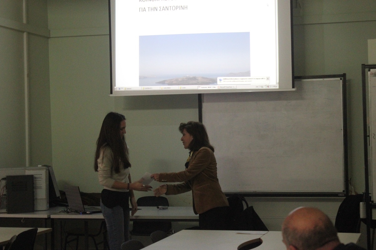 Την εκδήλωση άνοιξε ο Αναπληρωτής Καθηγητής Φίλιππος Αζαριάδης, Αντιπρόεδρος ΤΜΣΠΣ, ενώ τον διαγωνισμό κάδου απορριμμάτων Σαντορίνη περιέγραψε ο Διδάσκων του τμήματος, Σέργιος Φωτιάδης.