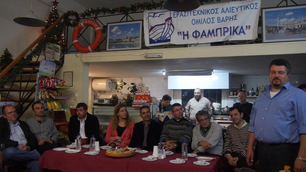 Σε μία κατάμεστη αίθουσα και παρουσία της δημοτική αρχής – Δημάρχου, αντιδημάρχων και της προέδρου του δημοτικού συμβουλίου – αλλά και εκπροσώπων άλλων ομίλων, ο Ερασιτεχνικός Αλιευτικός όμιλος Βάρης “Η Φάμπρικα” έκοψε την καθιερωμένη πρωτοχρονιάτικη πίτα του.