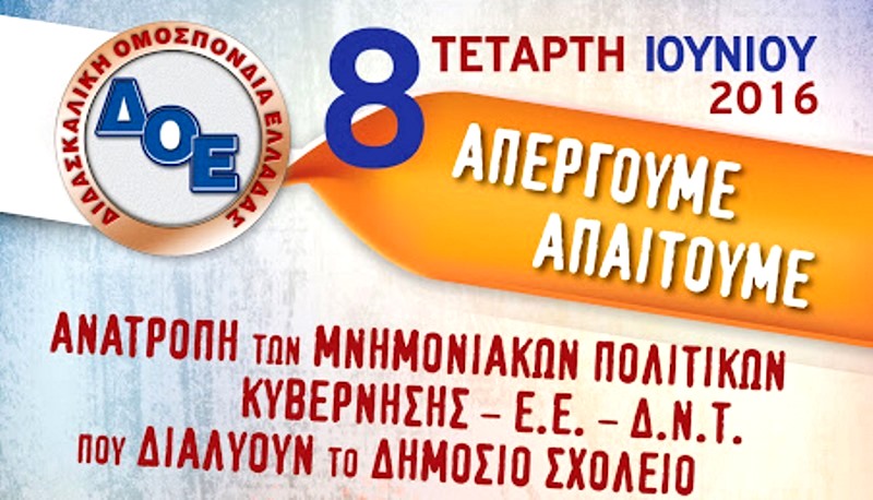 Όλοι την Τετάρτη 8/6 συμμετέχουμε στην ΑΠΕΡΓΙΑ – Συγκέντρωση 11:30 στην Περιφερειακή Διεύθυνση Εκπαίδευσης Ν. Αιγαίου.