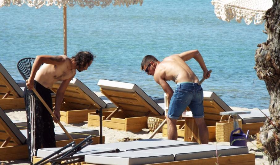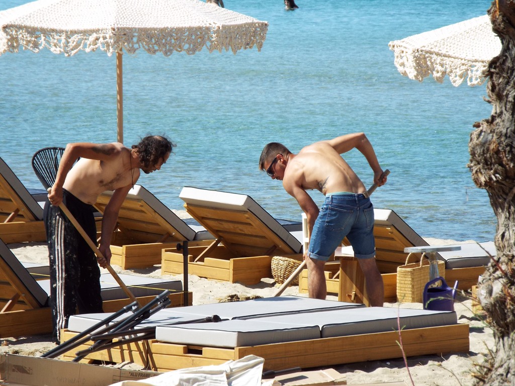 Επιπλέον, πραγματοποιήθηκε ενδελεχής καθαρισμός της άμμου της παραλίας, καθώς και του δρόμου, ο οποίος στις άκρες του συγκεντρώνει όγκο κλαδιών και φύλλων από τα αρμυρίκια, τα οποία παρασύρονται από τον άνεμο.