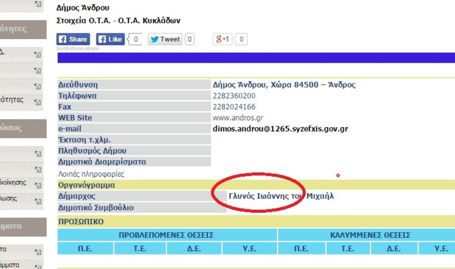 Συγκεκριμένα, μία απλή επίσκεψη στην συγκεκριμένη ιστοσελίδα αρκεί προκειμένου να διαπιστώσει κάποιος ότι το Συλλογικό Όργανο των Δήμων σε περιφερειακό επίπεδο διαθέτει το σύνολο των στοιχείων που αφορούν σε όλους του ΟΤΑ της προηγούμενης θητείας, δηλαδή της πρώτης “Καλλικρατικής” θητείας, στην οποία πρόεδρος υπήρξε ο π. Δήμαρχος Ρόδου, Στάθης Κουσουρνάς και αντιπρόεδρος και πρόεδρος του Τοπικού Παραρτήματος Κυκλάδων, ο π. Δήμαρχος Σύρου – Ερμούπολης, Γιάννης Δεκαβάλλας. Πλην των γενικών στοιχείων, όσον αφορά στους Δήμους των Κυκλάδων, γεγονός που επιβεβαιώνει τη στασιμότητα που επικρατεί όσον αφορά στη μη επικαιροποίησή της, είναι το όνομα του π. Δημάρχου Άνδρου, Γιάννη Γλυνού, η θητεία του οποίου έληξε μετά τις δημοτικές εκλογές, με την ανάληψη των καθηκόντων από τον Θεοδόση Σουσούδη.