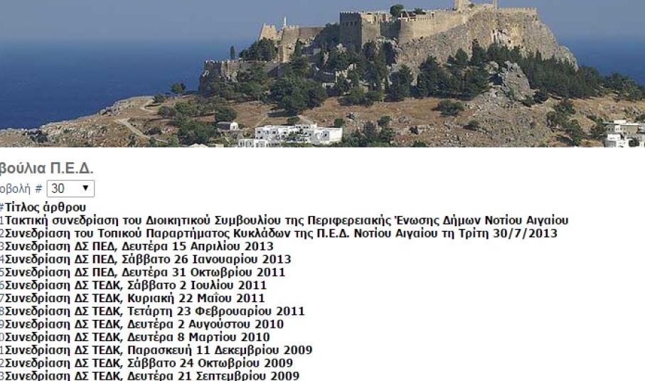 Άχρηστο εργαλείο μοιάζει να αποτελεί η ιστοσελίδα της Περιφερειακής Ένωσης Δήμων Νοτίου Αιγαίου (ΠΕΔ Ν. Αιγαίου), με την τελευταία ανάρτηση του 2014 να προδίδει ότι το site μένει χωρίς διαχειριστή και οι ενδιαφερόμενοι πολίτες χωρίς καμία απολύτως ενημέρωση.