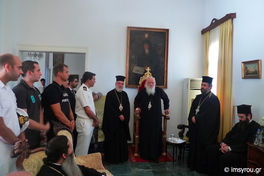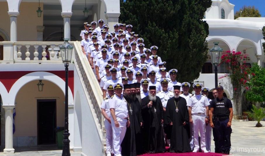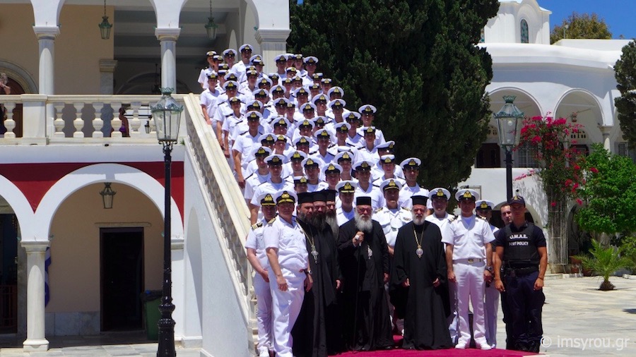 Στο πλαίσιο της επίσκεψής του, απηύθυνε Πατρικές ευχές και ευλογίες στους σπουδαστές της Σχολής Δοκίμων του Λιμενικού Σώματος για τη ζωή τους, την πορεία και τα σταδιοδρομία τους.
